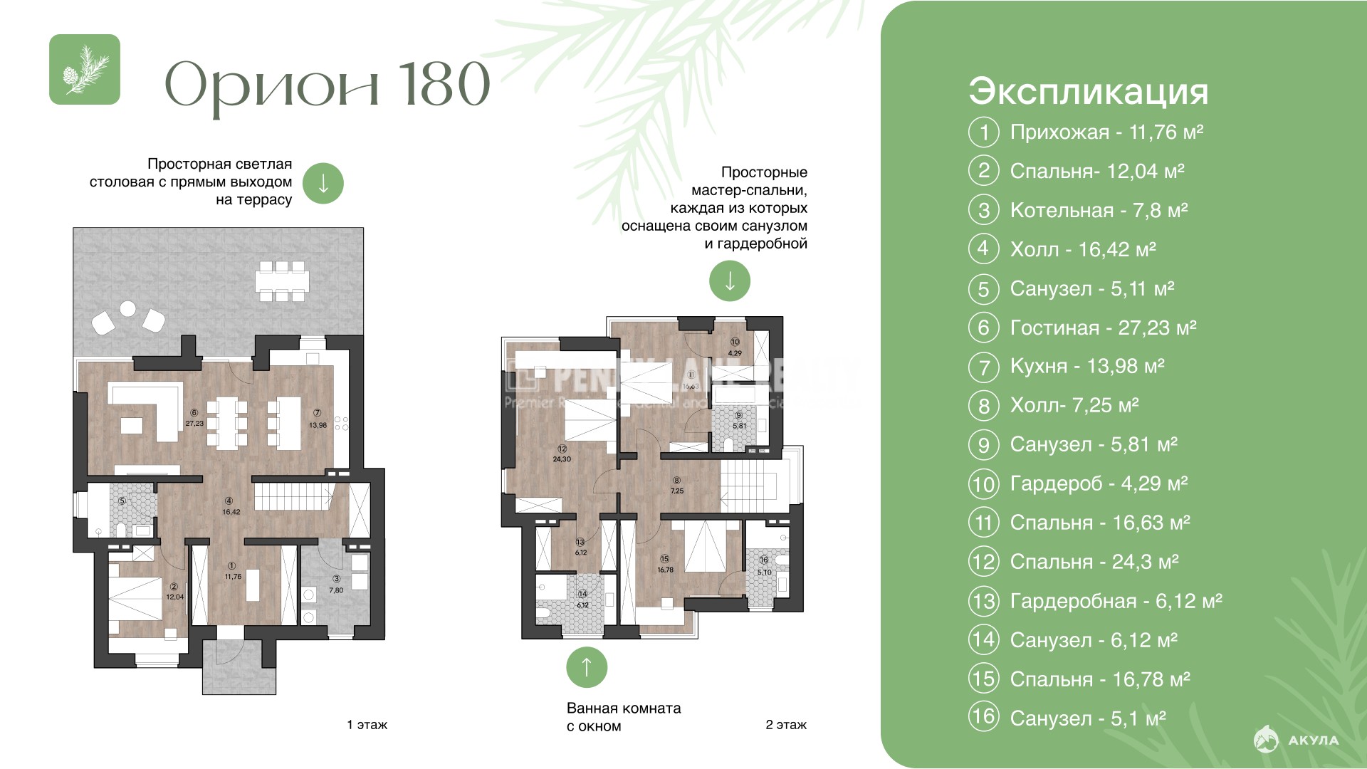 Площадь 184 м² (без террасы).