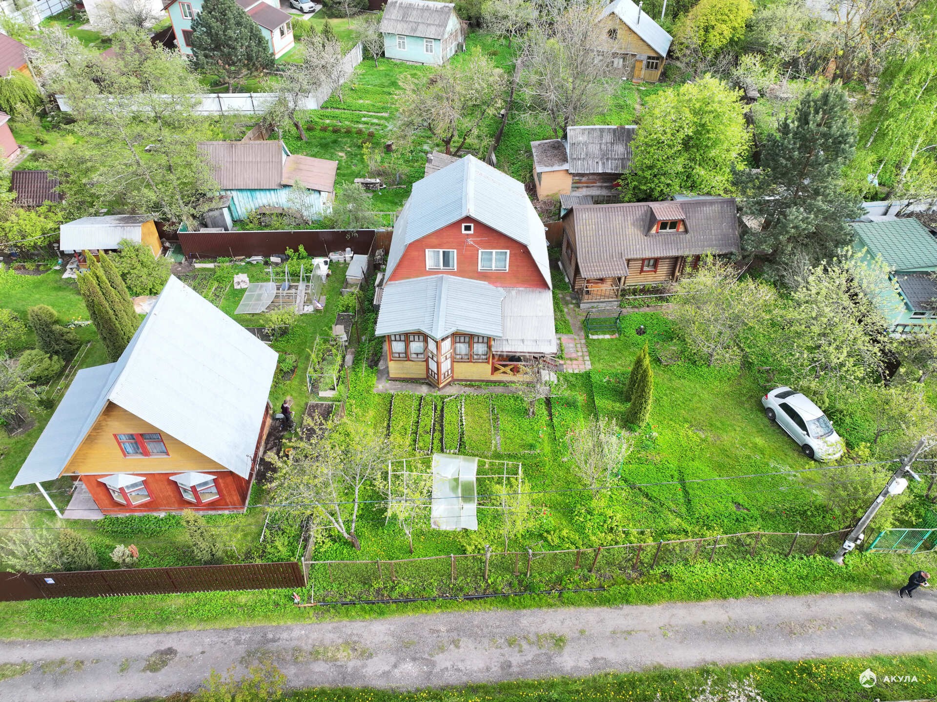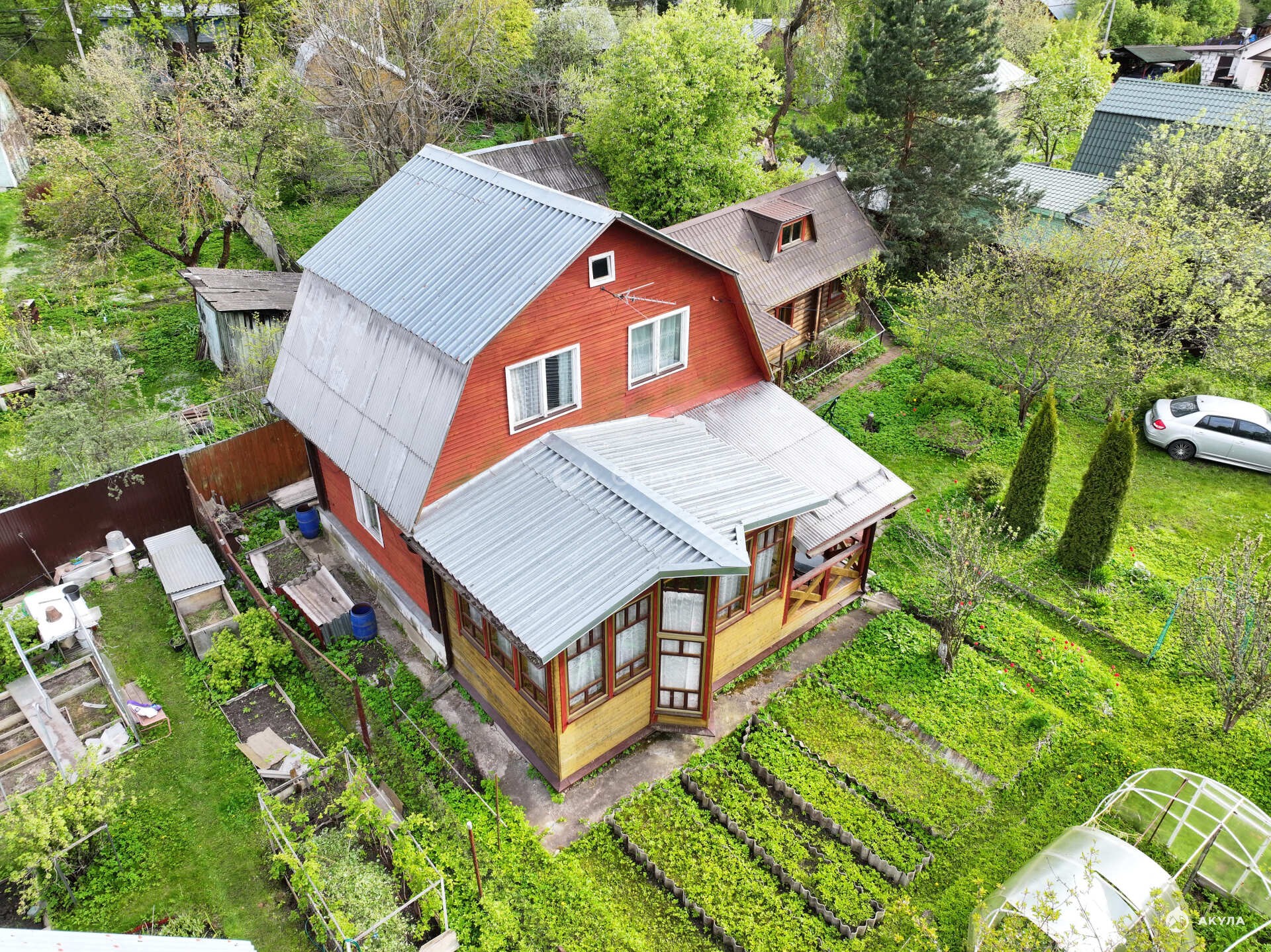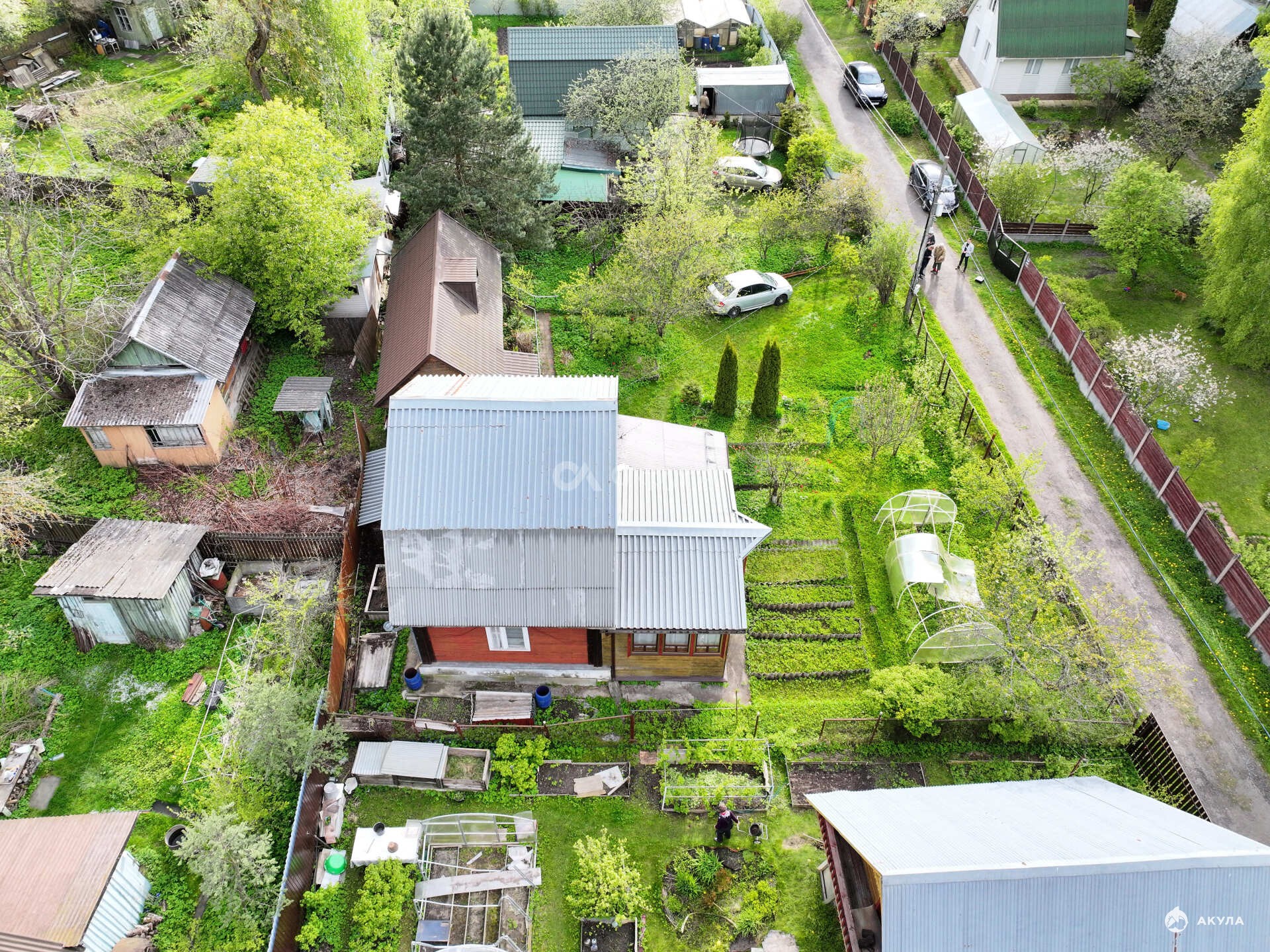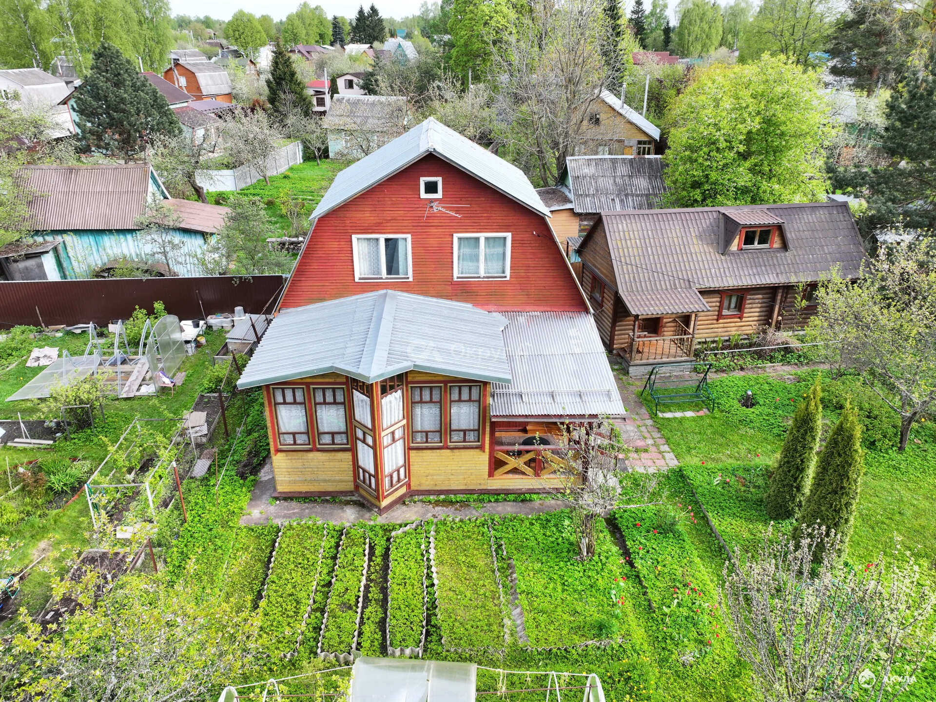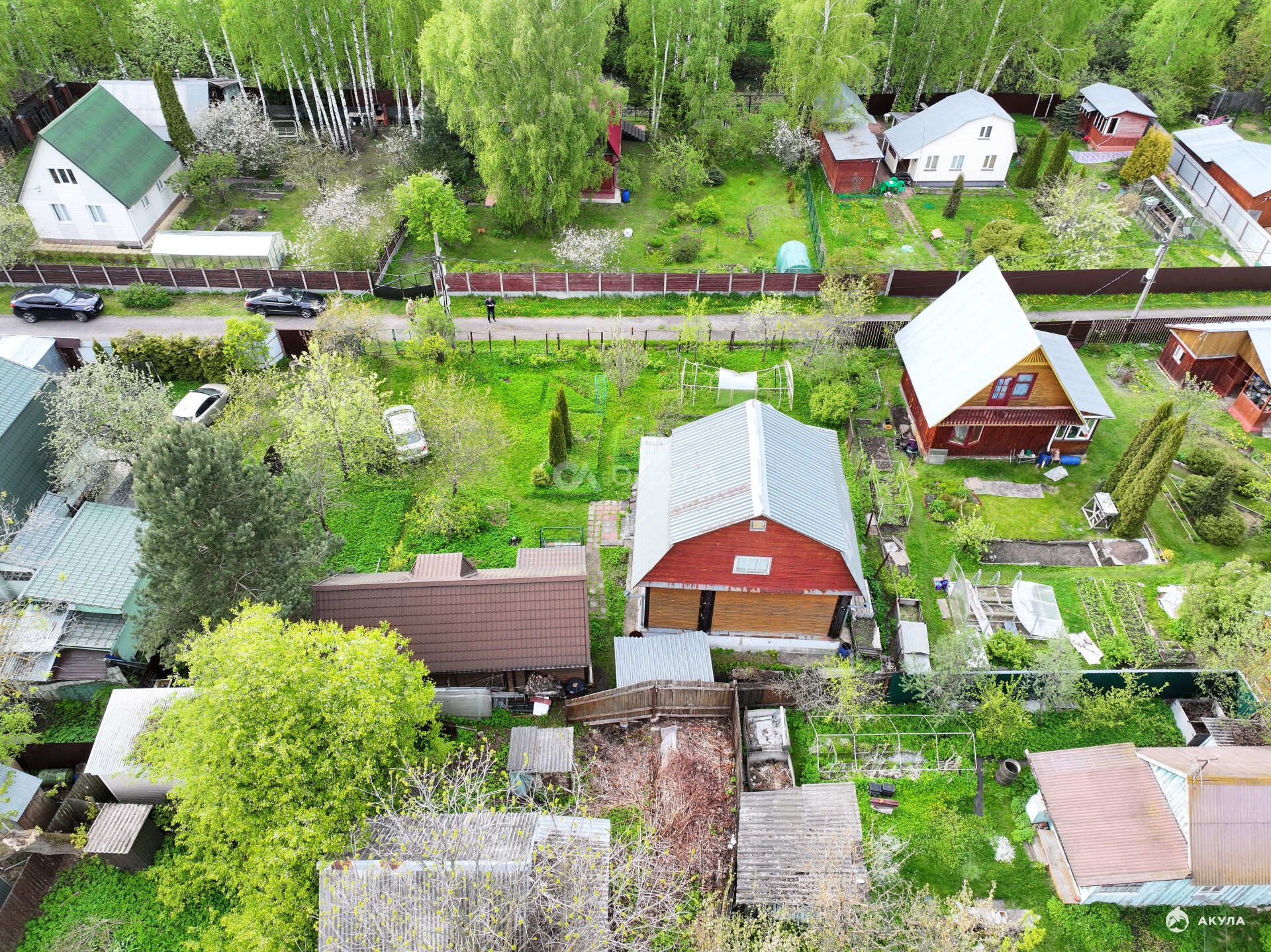 -зеленый газон, хвойные пoсадки, молодые плодовыe деpeвья( вишня, черешня, яблони, груша, смородина красная, черная, облепиха, малина, все плодоносит), так же есть Кедр привезенный из сибири 25 лет назад скоро будут орешки!